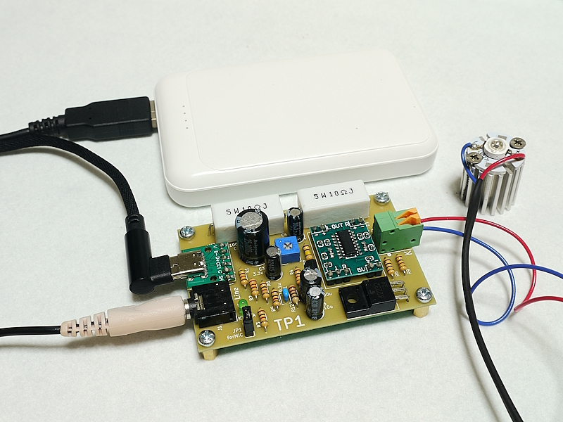 電源はコンパクトながら電流容量の大きなスマホ用モバイルバッテリーを使用し、USB-Cケーブルにて給電する仕様です。