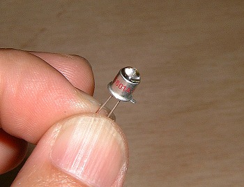 《フォトトランジスタ》 トランジスタには3本の足があります。通常Cと呼ばれる足からEと呼ばれる足に向かって電流が流れていますが、もう一本Bという足にわずかの電圧をかけるとC⇔E間に電流がどっと流れます。この性質(増幅作用)を利用することによって、ラジオもテレビも成り立っているのです。 Bという足に電圧をかけずに光を当てるだけでもこの作用が起こります。これを利用したのが、フォトトランジスタという素子です。 リモコンの受光部分や、機械のセンサーなど多くの場所に使われています。 |