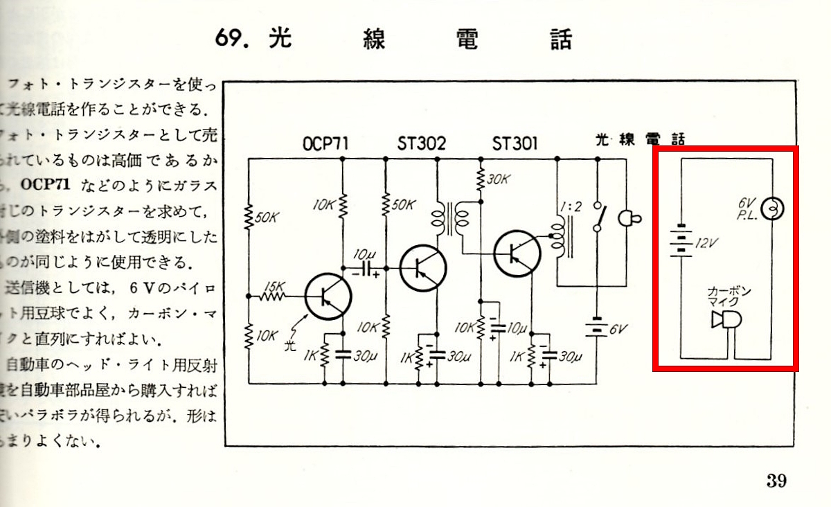 記憶の中にあったものと近い回路図 カーボンマイクとフォトトランジスタが使われている