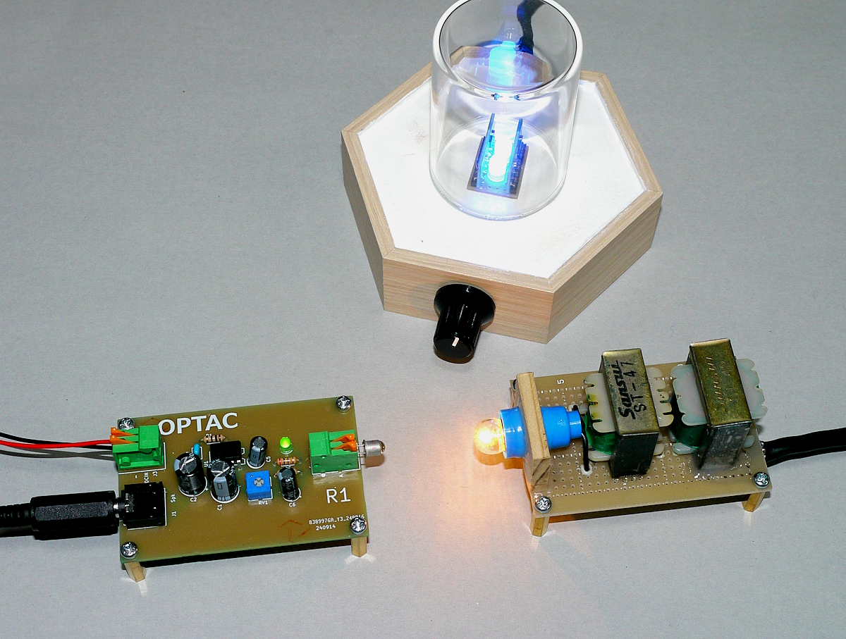 豆電球送信機とフォトトランジスタ受信機の組み合わせ 音量は十分とは言えないがちゃんと復調できている