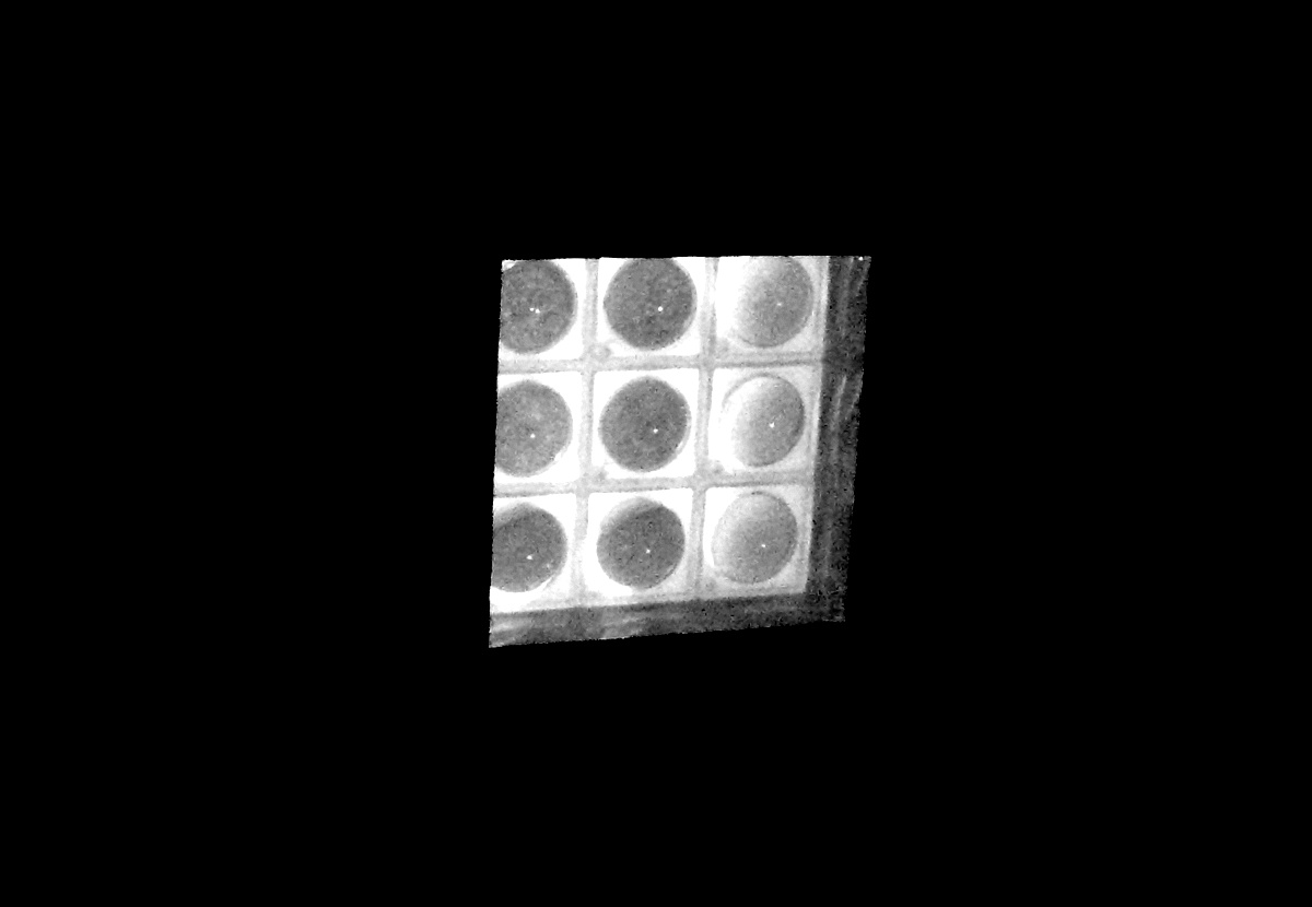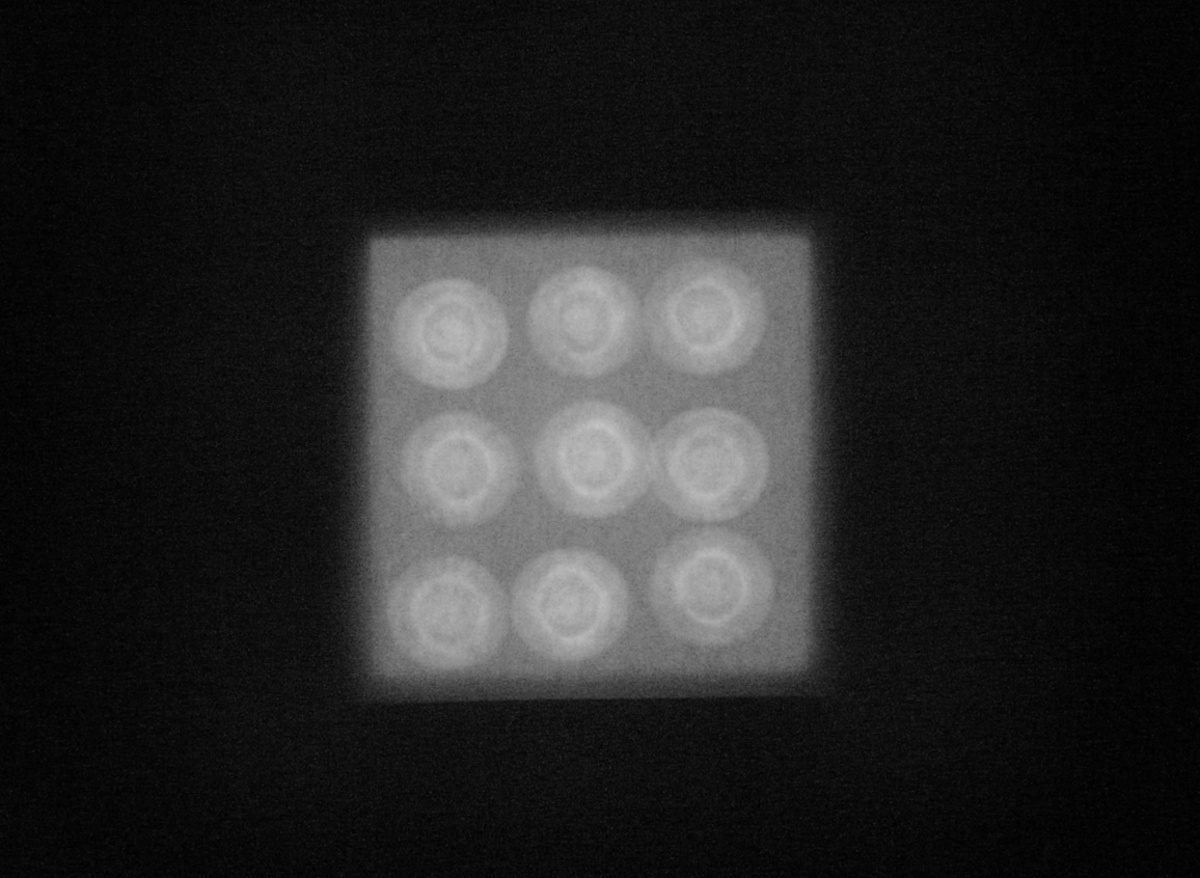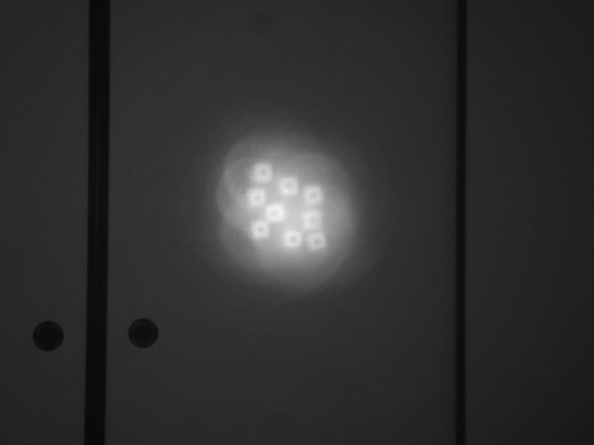 赤外線カメラにて-2 レンズを外し前面に白紙を置いた時の透過光像 残念!この段階で光軸のズレがわかる
